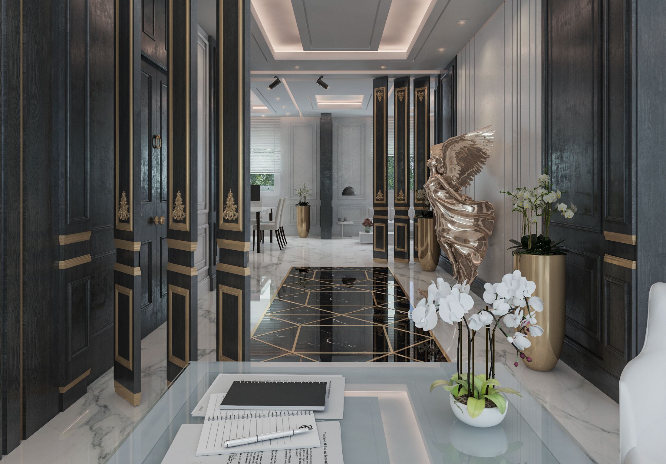 The architecture of the house is contemporary, consisting of an interplay of Travertine blocks, concrete finishes, open windows and niches, openings and louvers, large intermittent ventilation. In this project we built the villa for our clients and designed five interior spaces: Dining room, Guest bathroom, Master bathroom, Master dressing , and Bedroom. The designed focused on natural colors of white and beige.